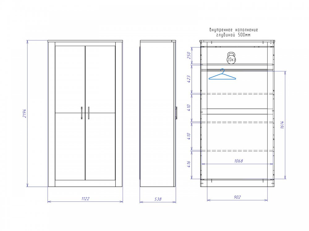 - Шкаф 2-х дверный 2194 Денвер Риббек серый
