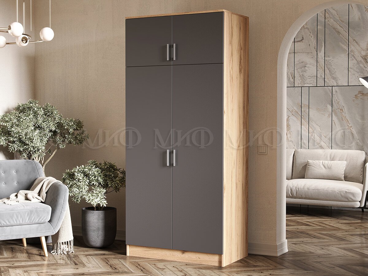 - Шкаф 2-х створчатый Миф Графит/Дуб Крафт