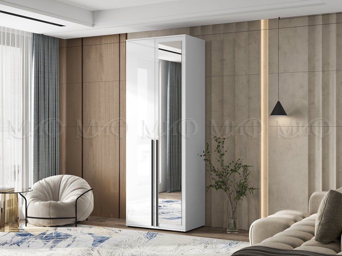 - Шкаф 2-х створчатый Норд 800 с зеркалом белый глянец