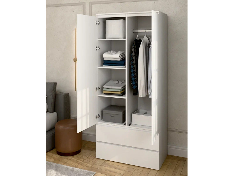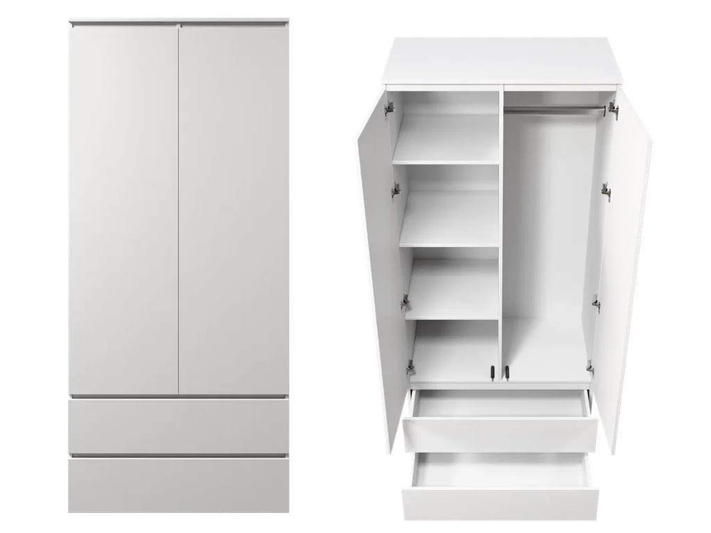 - Шкаф 2-хстворчатый с 2-мя ящиками Прайм белый