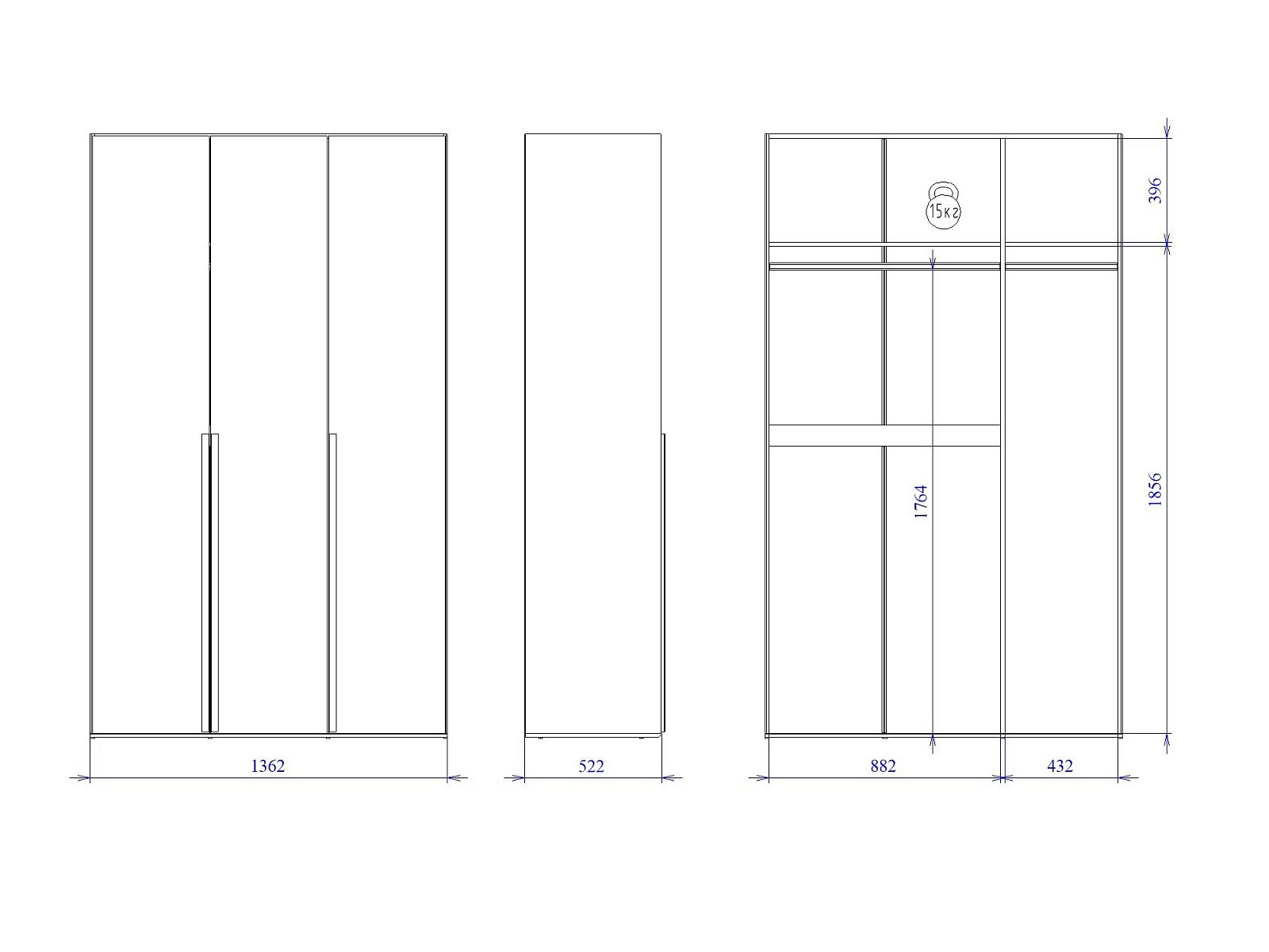 Шкаф 3-дверный с зеркальными дверями Аврора