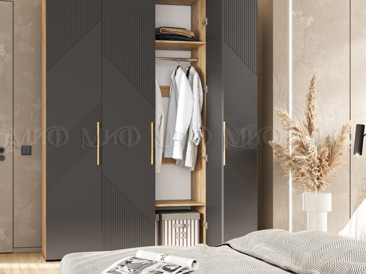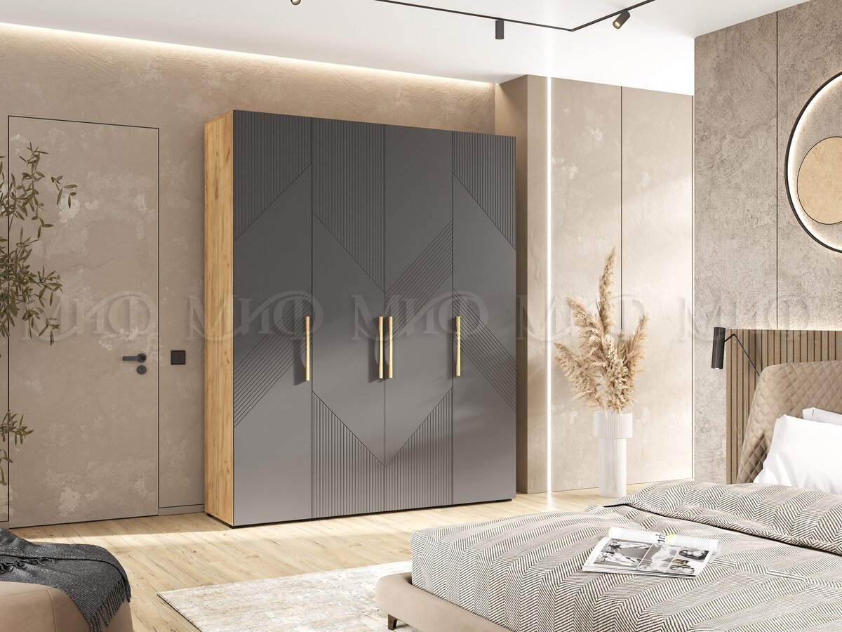 - Шкаф 4-х створчатый (1800) Ирис Браш Графит, Дуб Крафт