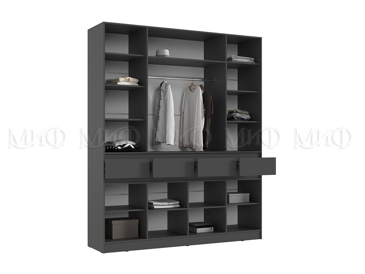 - Шкаф 4-х створчатый Роджина Графит/Дуб Крафт Белый