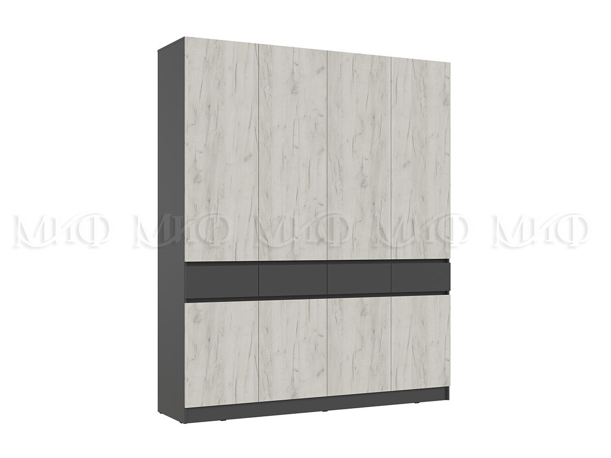 Шкаф 4-х створчатый Роджина Графит/Дуб Крафт Белый