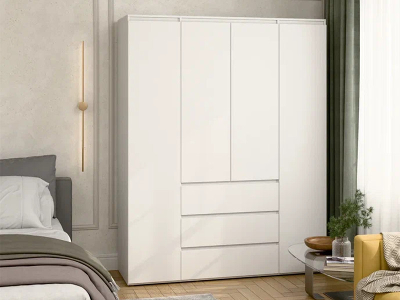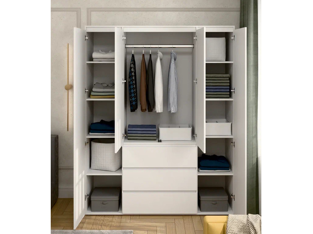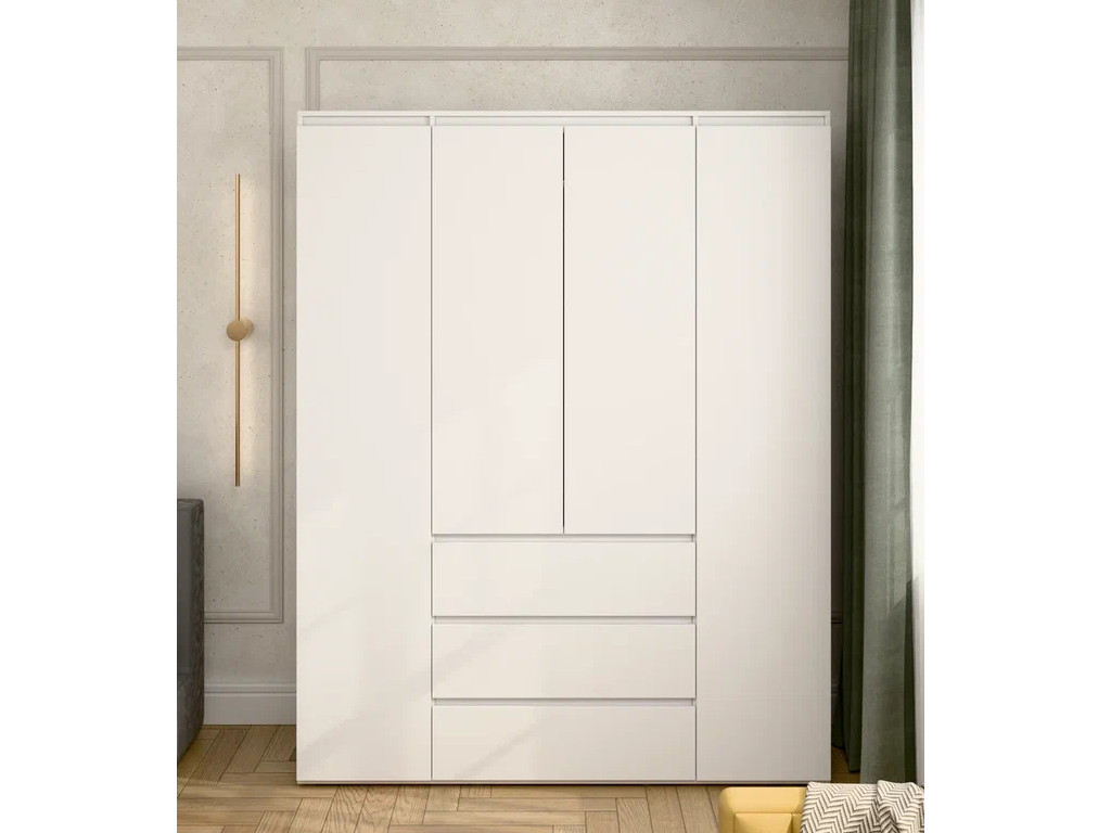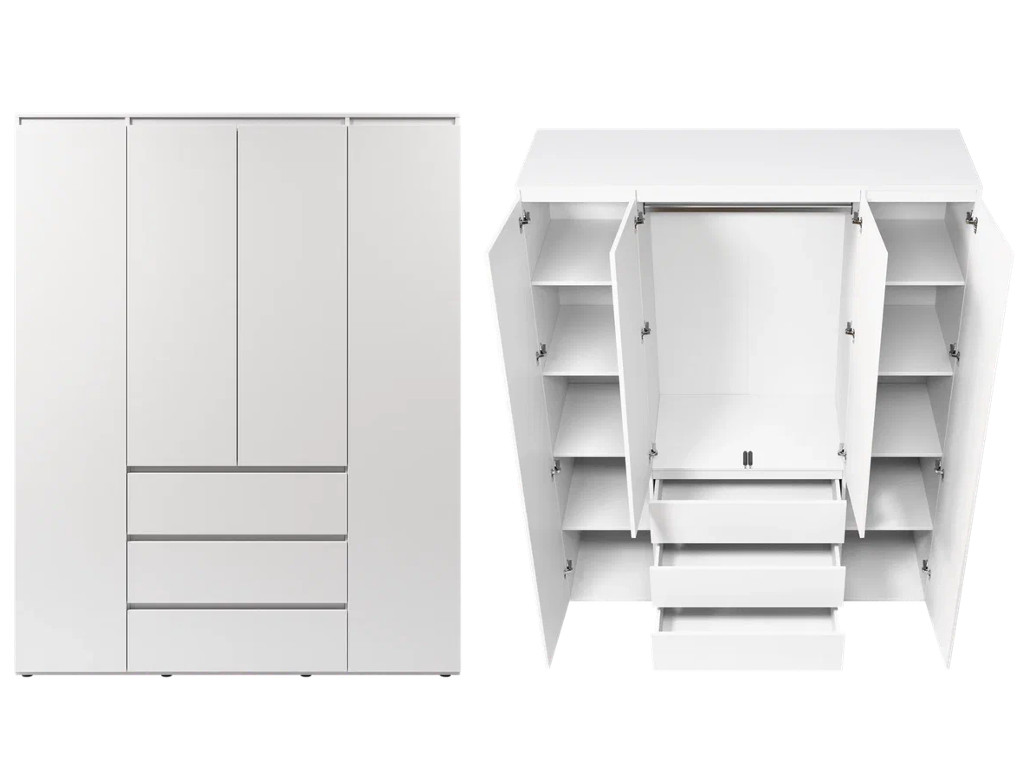 - Шкаф 4-хстворчатый с 3-мя ящиками Прайм белый