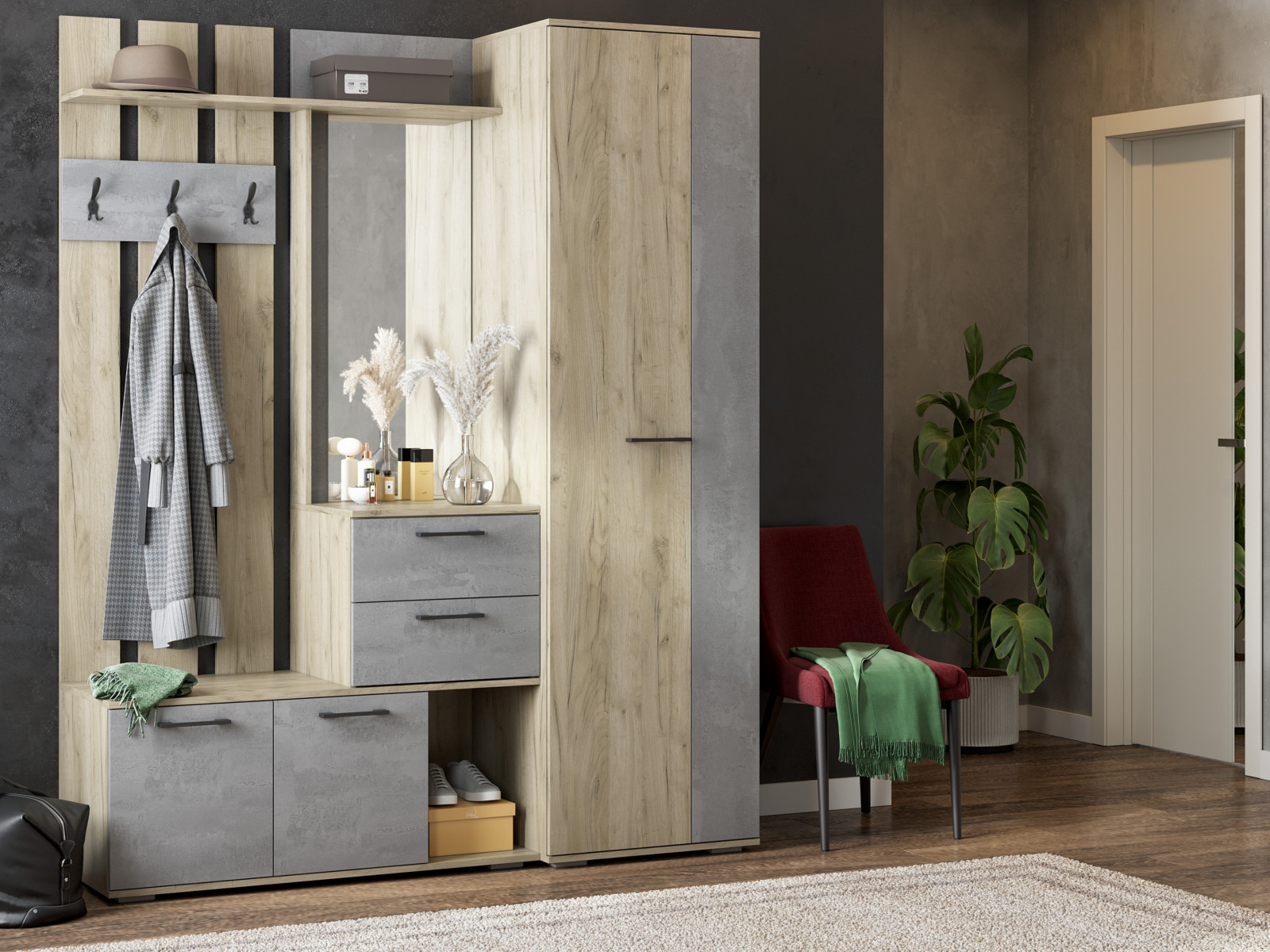 Цвет фасада: Дуб крафт серый, бетонный камень