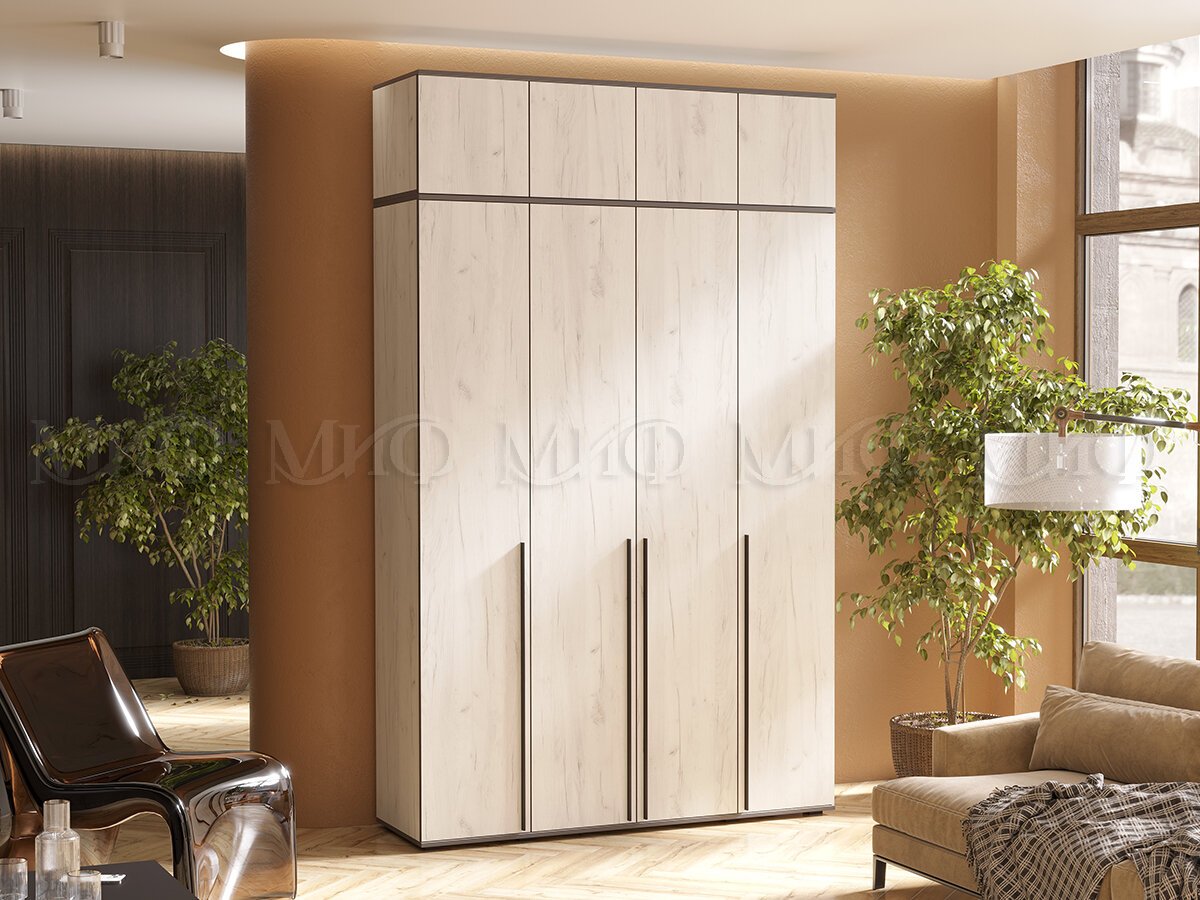 - Шкаф четырехстворчатый Норд 1600 с антресолью дуб крафт белый МГ