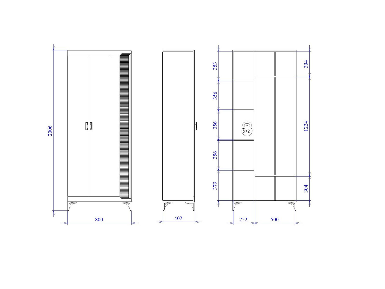 Размер ШхГхВ: 800*402*2006 мм