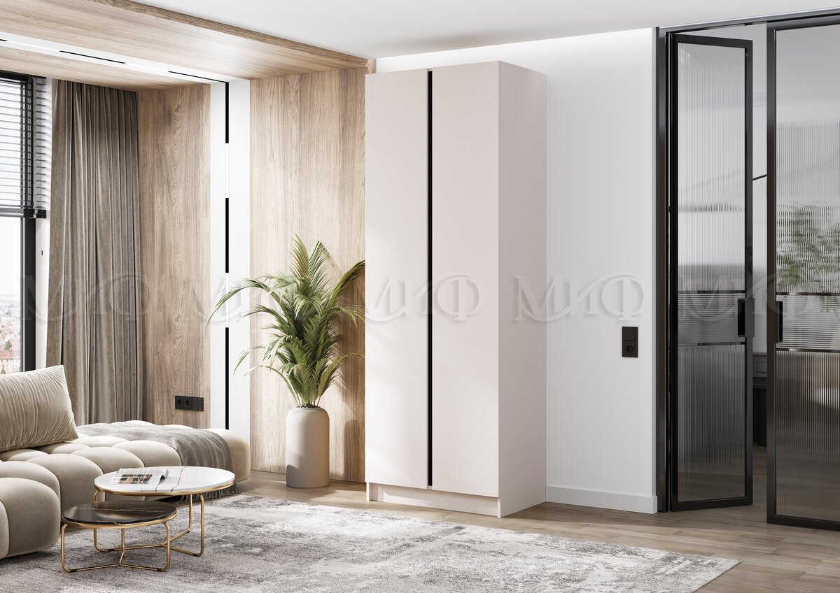 - Шкаф двухстворчатый Келвин (800) Кашемир-вставка черная