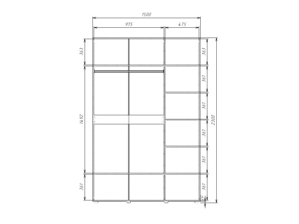 - Шкаф Гранд ГШК/1-23-15-222 (двери тип 2) с тремя зеркалами