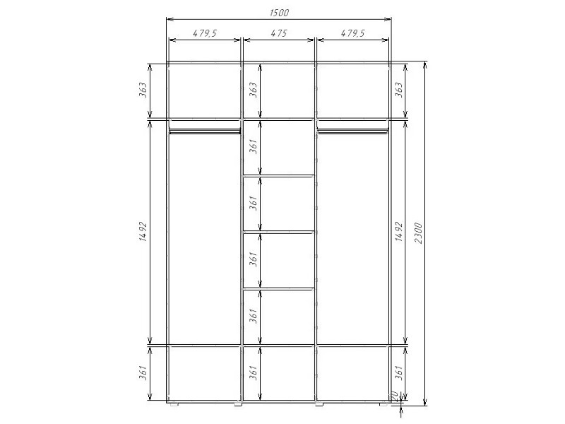 - Шкаф комбинированный с полками в центре и 2 штангами по краям Гранд ГШК/3-23-15-333