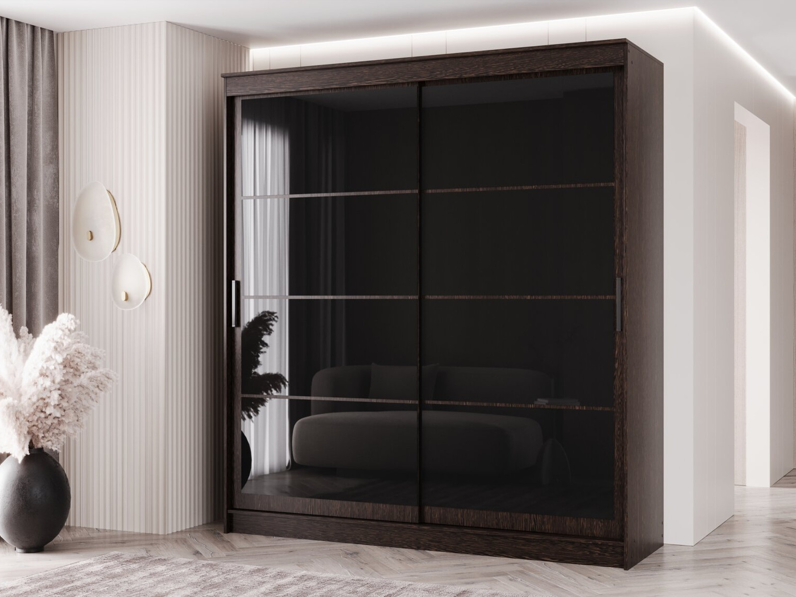 - Шкаф-купе Гранд-1 2000 Дуб Венге-двери Лакобель черный