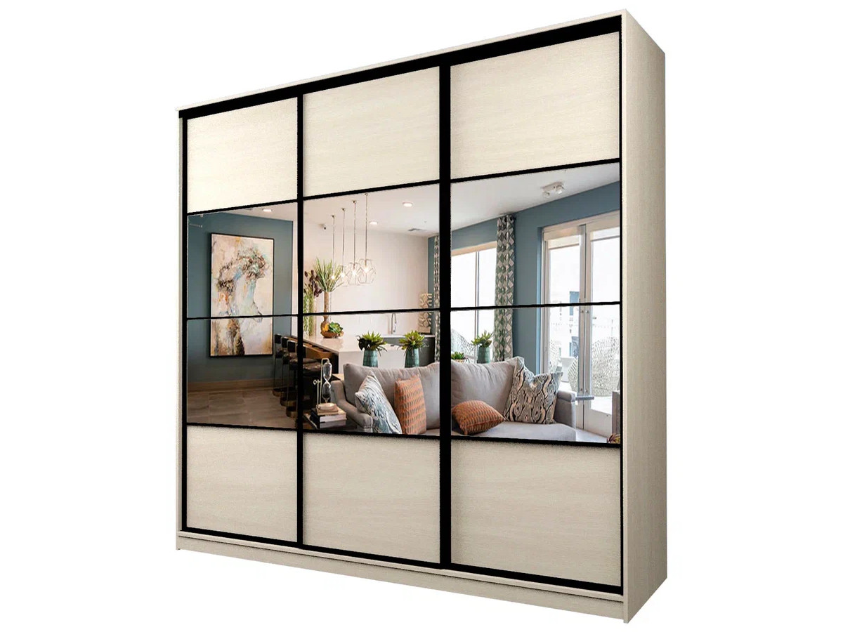 - 3 двери верхняя и нижняя вставка – ДСП 10 мм, две центральные – зеркало серебро.