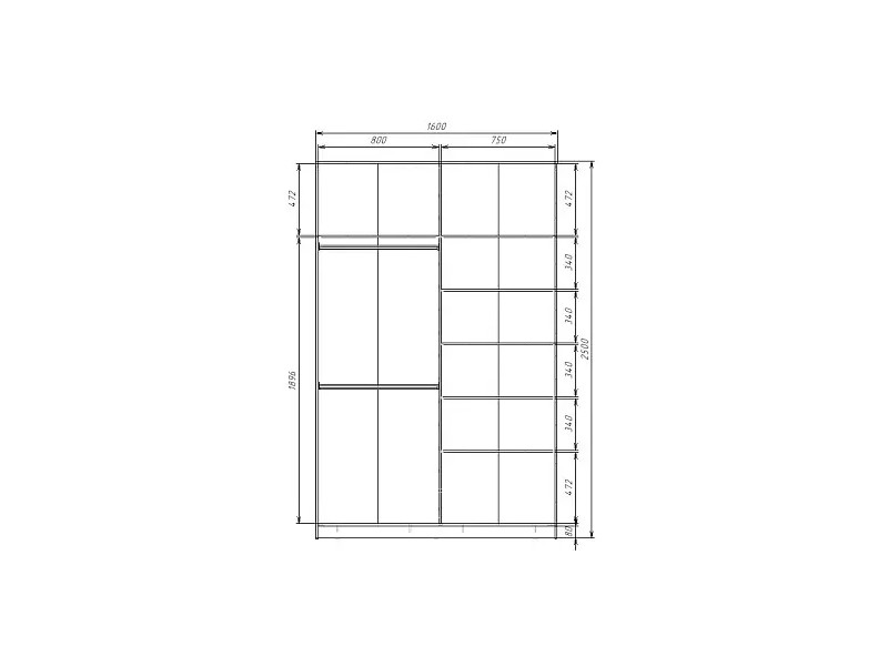 - 2 двери верхняя и нижняя вставка – ДСП 10 мм, центральная – зеркало пескоструй.