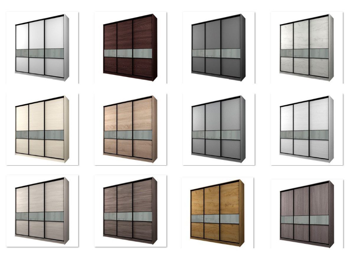 - 3 двери верхняя и нижняя вставка – ДСП 10 мм, центральная – стекло с пленкой Oracal.