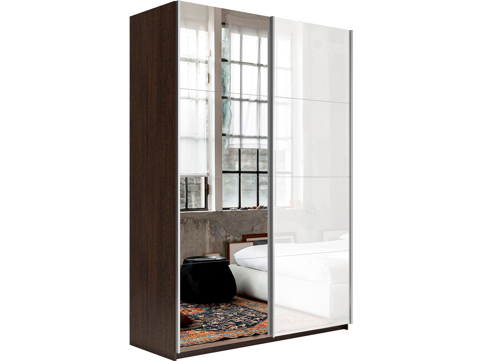- Шкаф-купе Прайм 2-х дверный 1200 Зеркало/Стекло Белое Венге