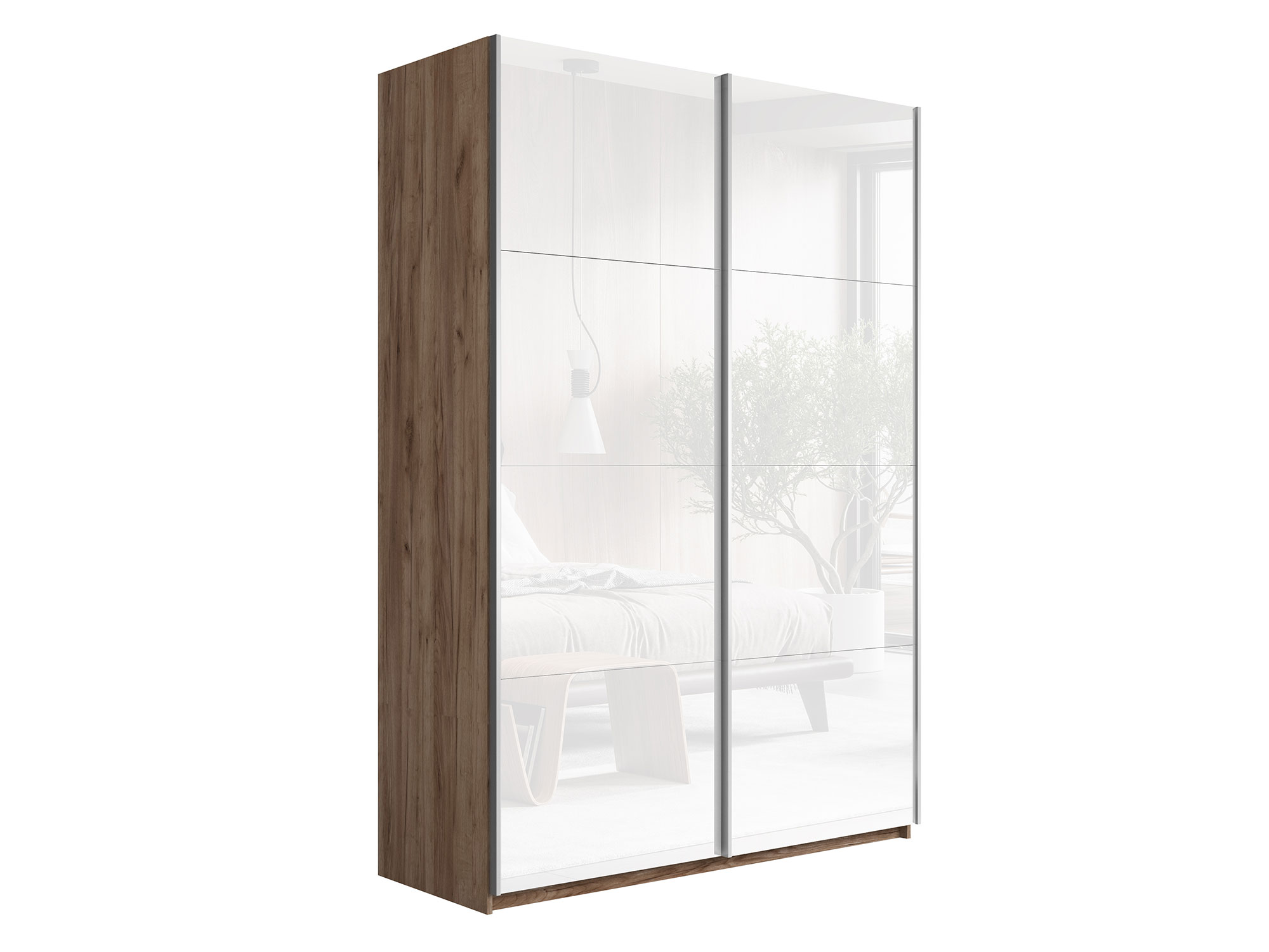 Шкаф-купе Прайм 2-х дверный 1400 Стекло Белое Крафт табачный