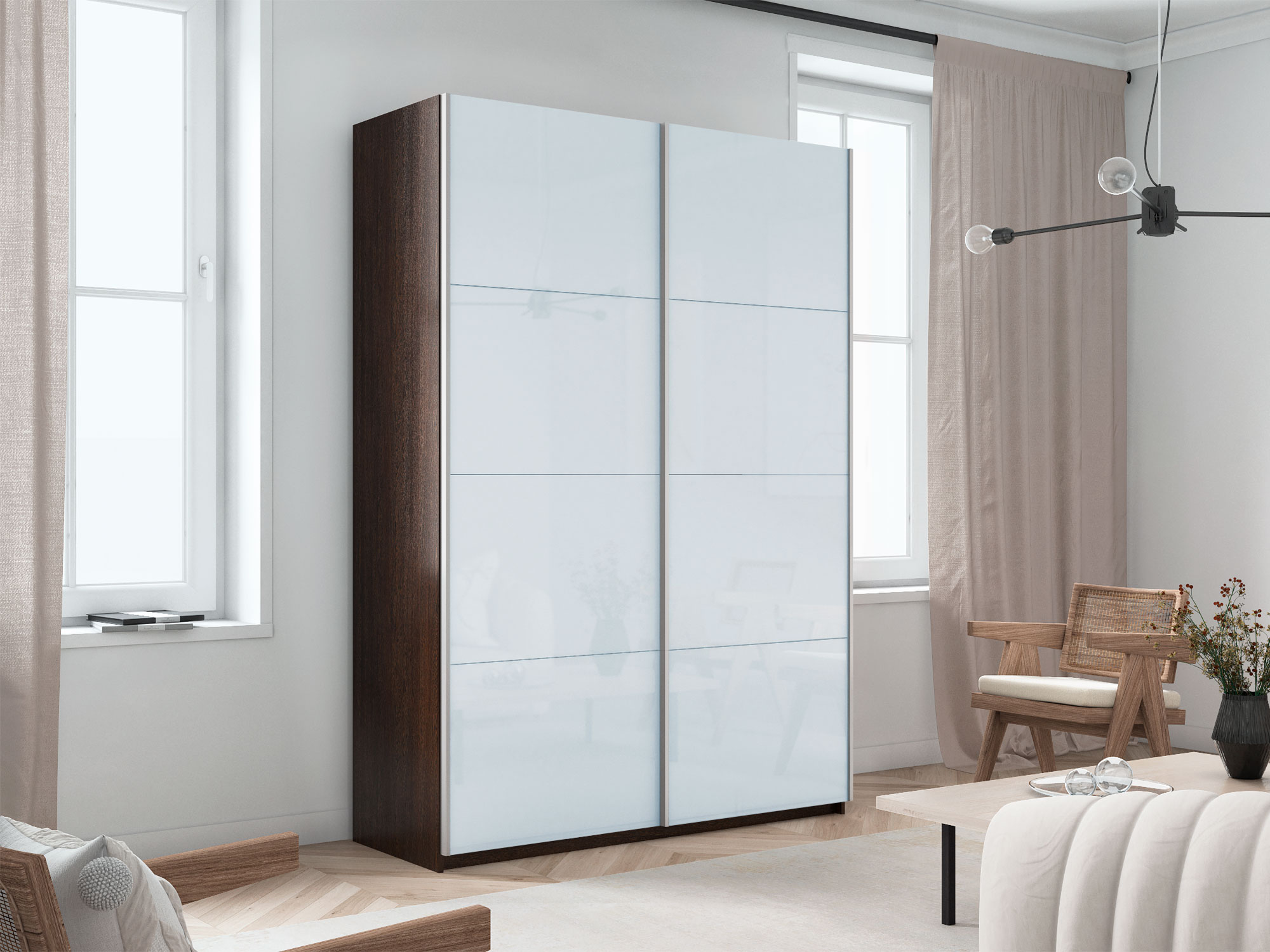 - Шкаф-купе Прайм 2-х дверный 1400 Стекло Белое Венге