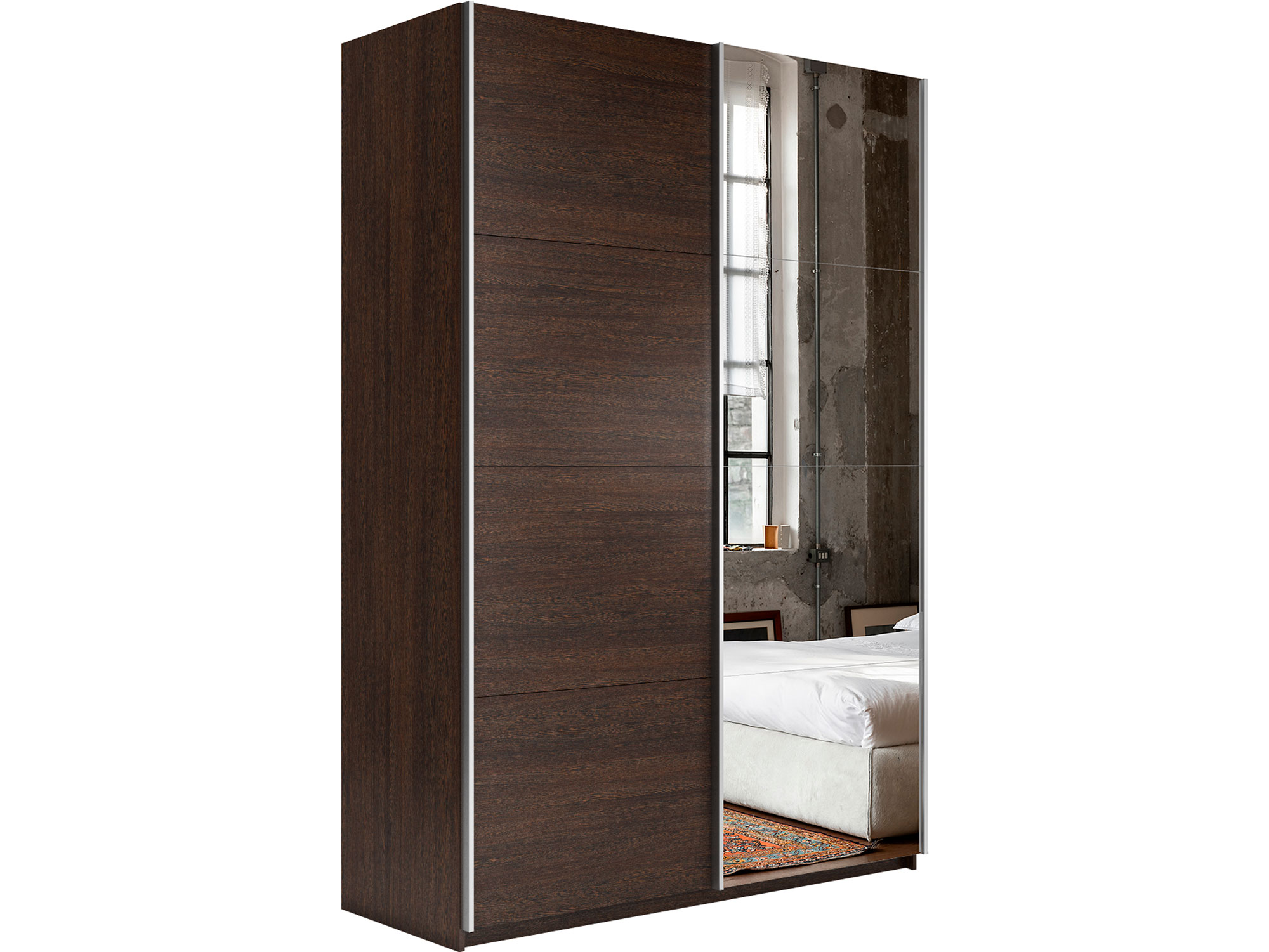 - Шкаф-купе Прайм 2-х дверный 1400 Зеркало/ДСП Венге
