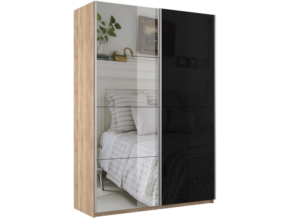 Шкаф-купе Прайм 2-х дверный 1400 Зеркало/Стекло Черное Сонома