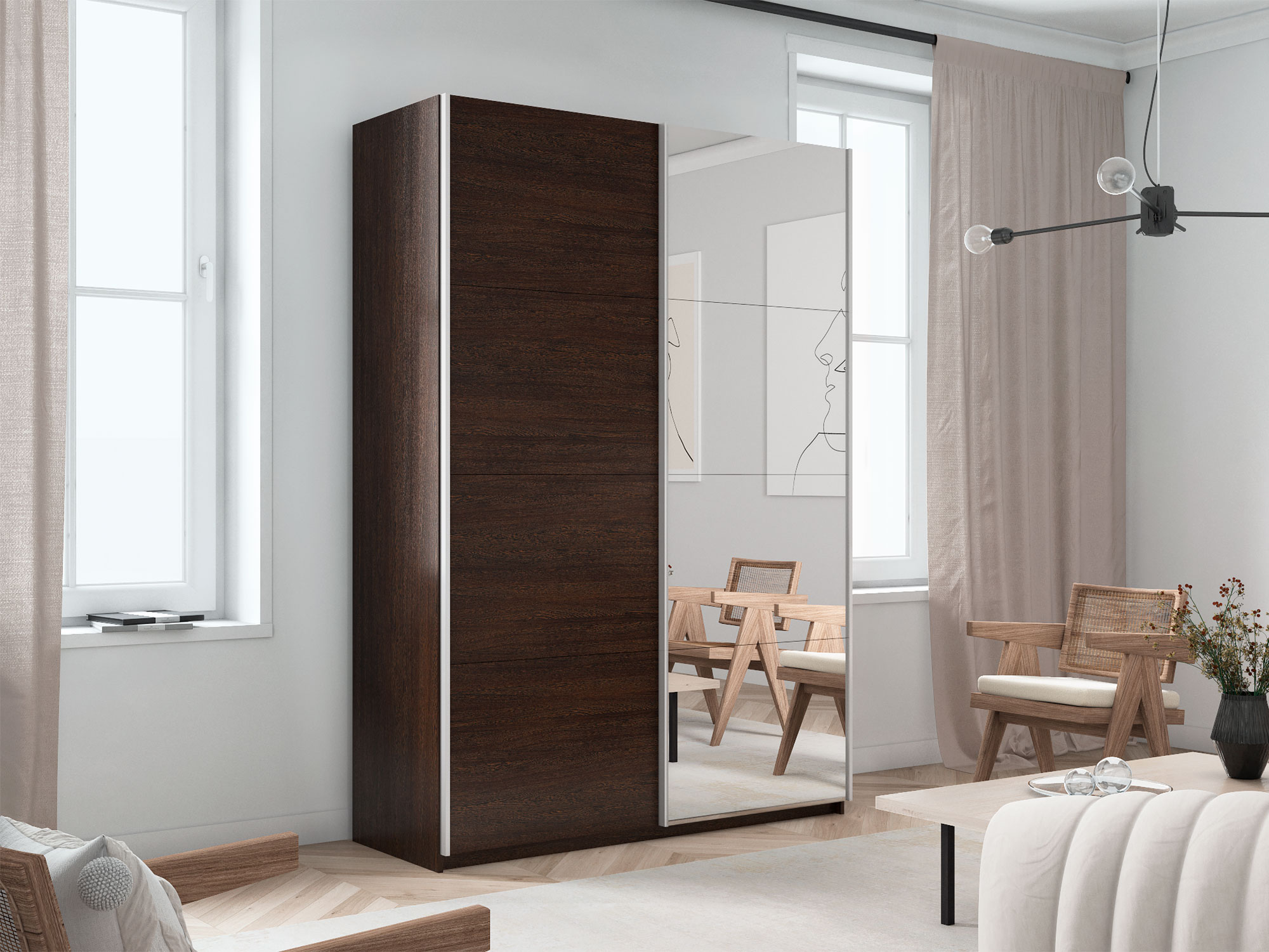 - Шкаф-купе Прайм 2-х дверный 1600 Зеркало/ДСП Венге