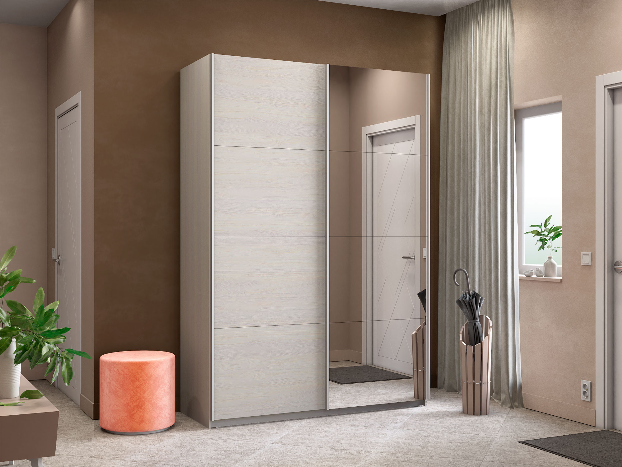 - Шкаф-купе Прайм 2-х дверный 1600 Зеркало/ДСП Ясень Анкор Светлый