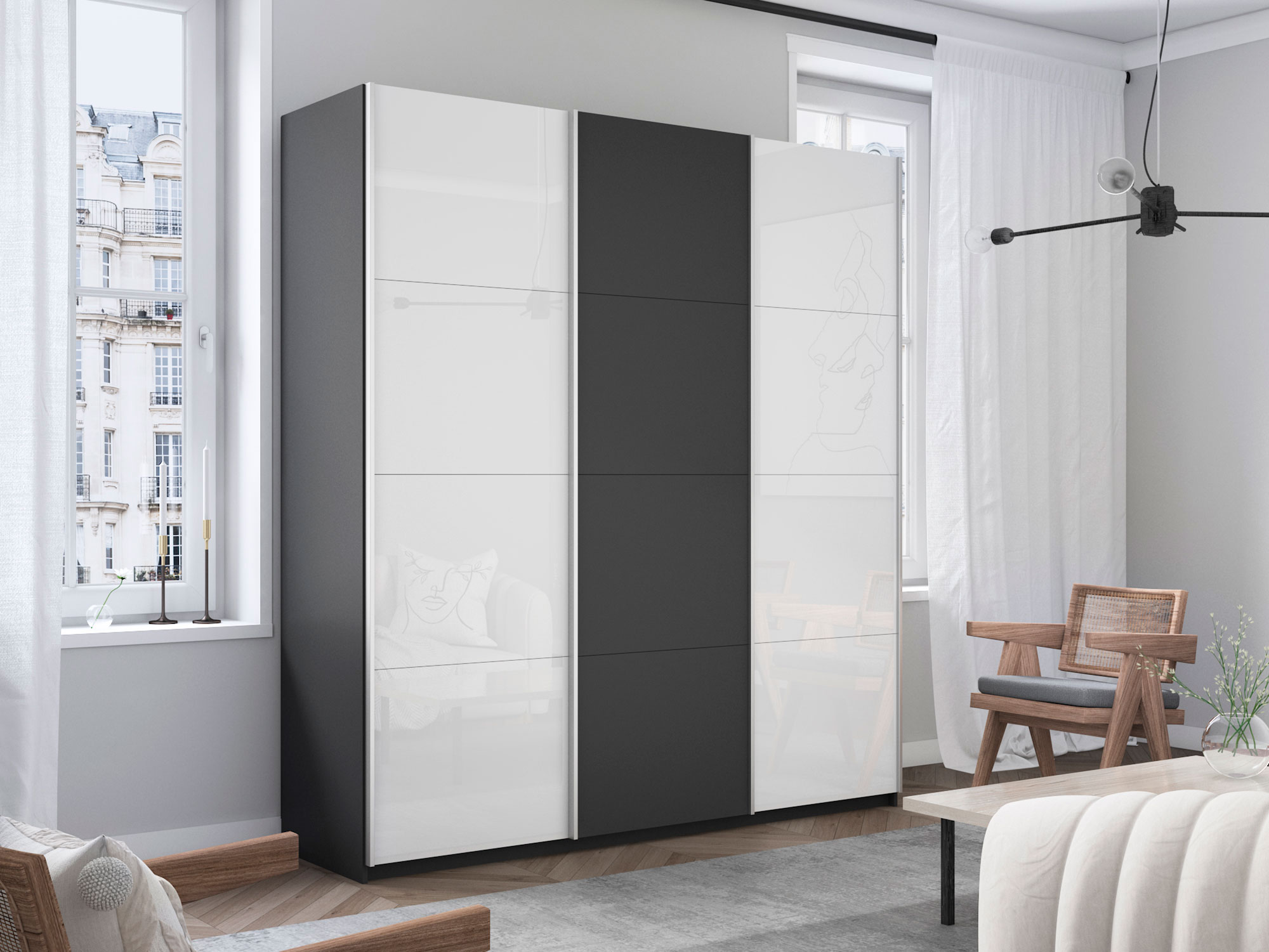 - Шкаф-купе Прайм 3-х дверный 1800 два Стекла Белые/ДСП Серый Диамант