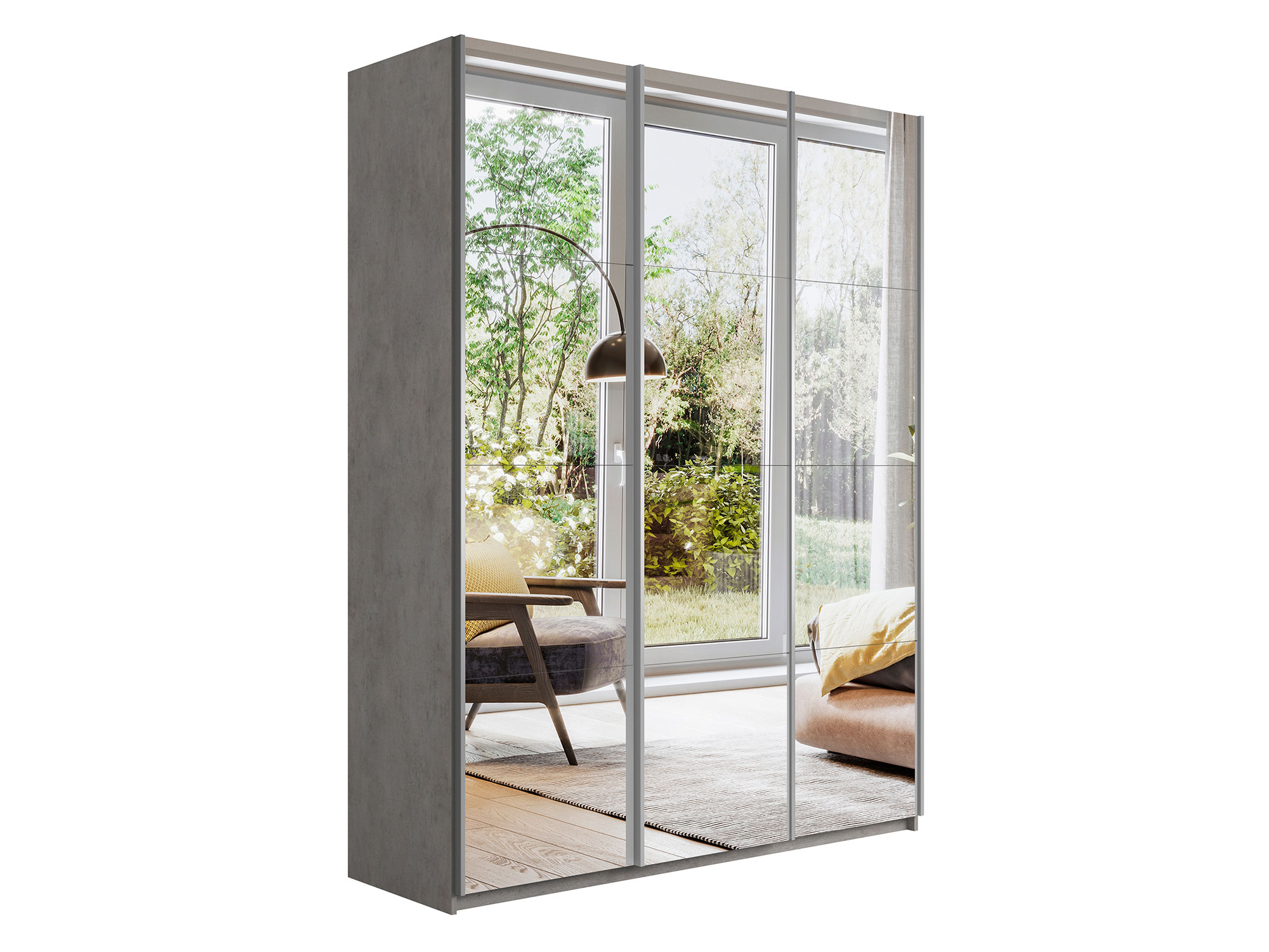 - Шкаф-купе Прайм 3-х дверный 1800 три зеркала Бетон
