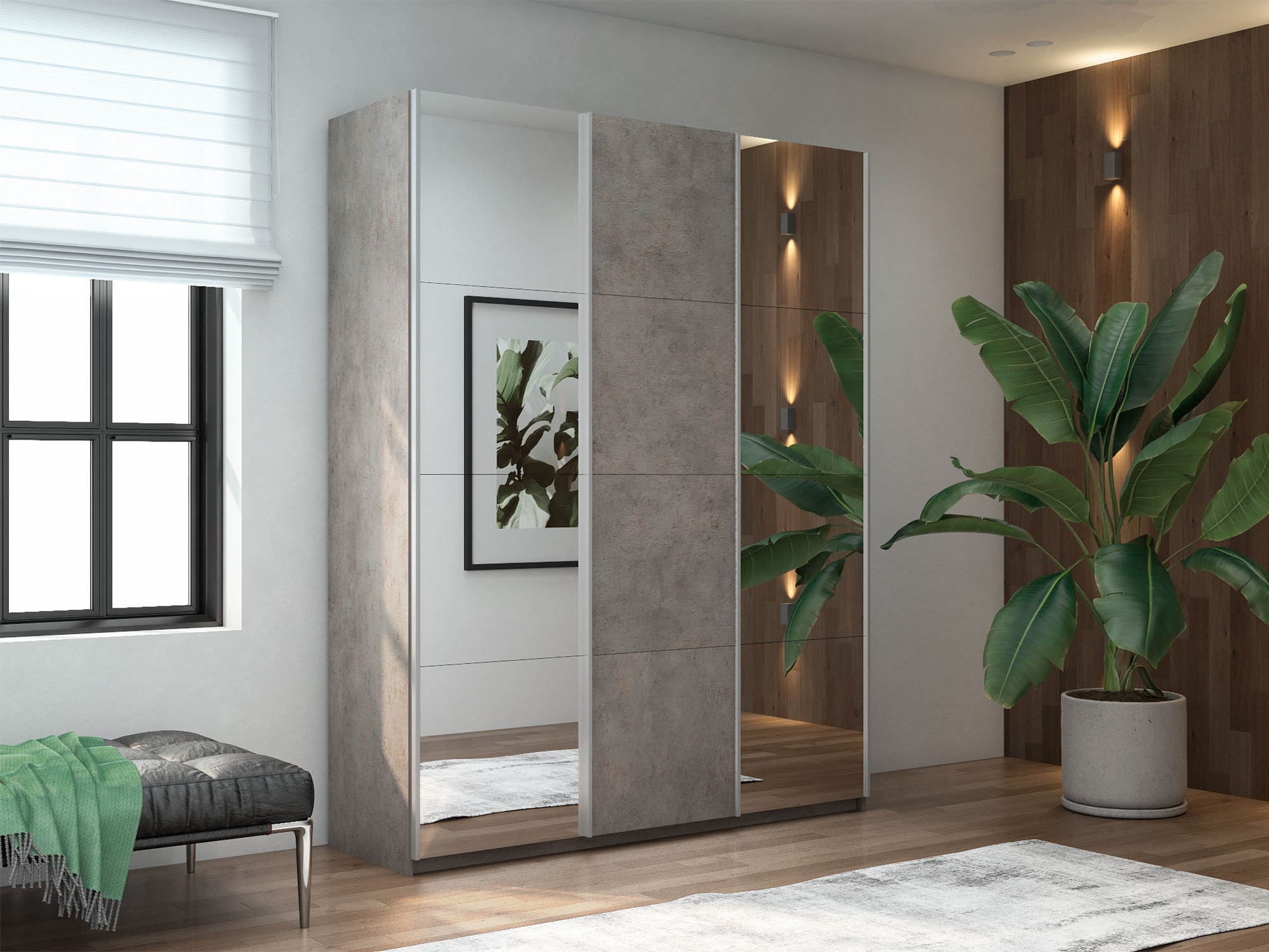 - Шкаф-купе Прайм 3-х дверный 2100 два Зеркала/ДСП Бетон