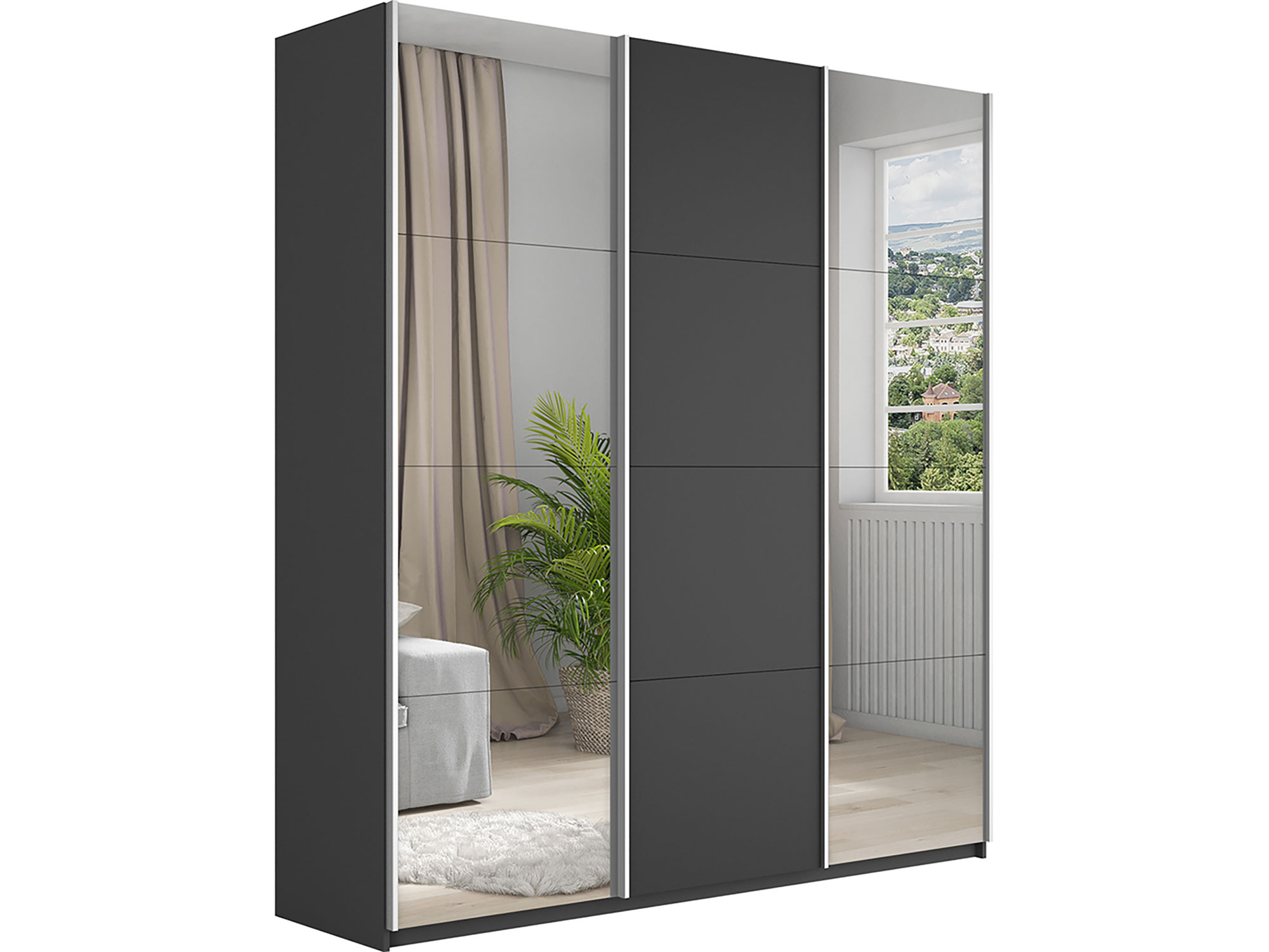 - Шкаф-купе Прайм 3-х дверный 2100 два Зеркала/ДСП Серый Диамант