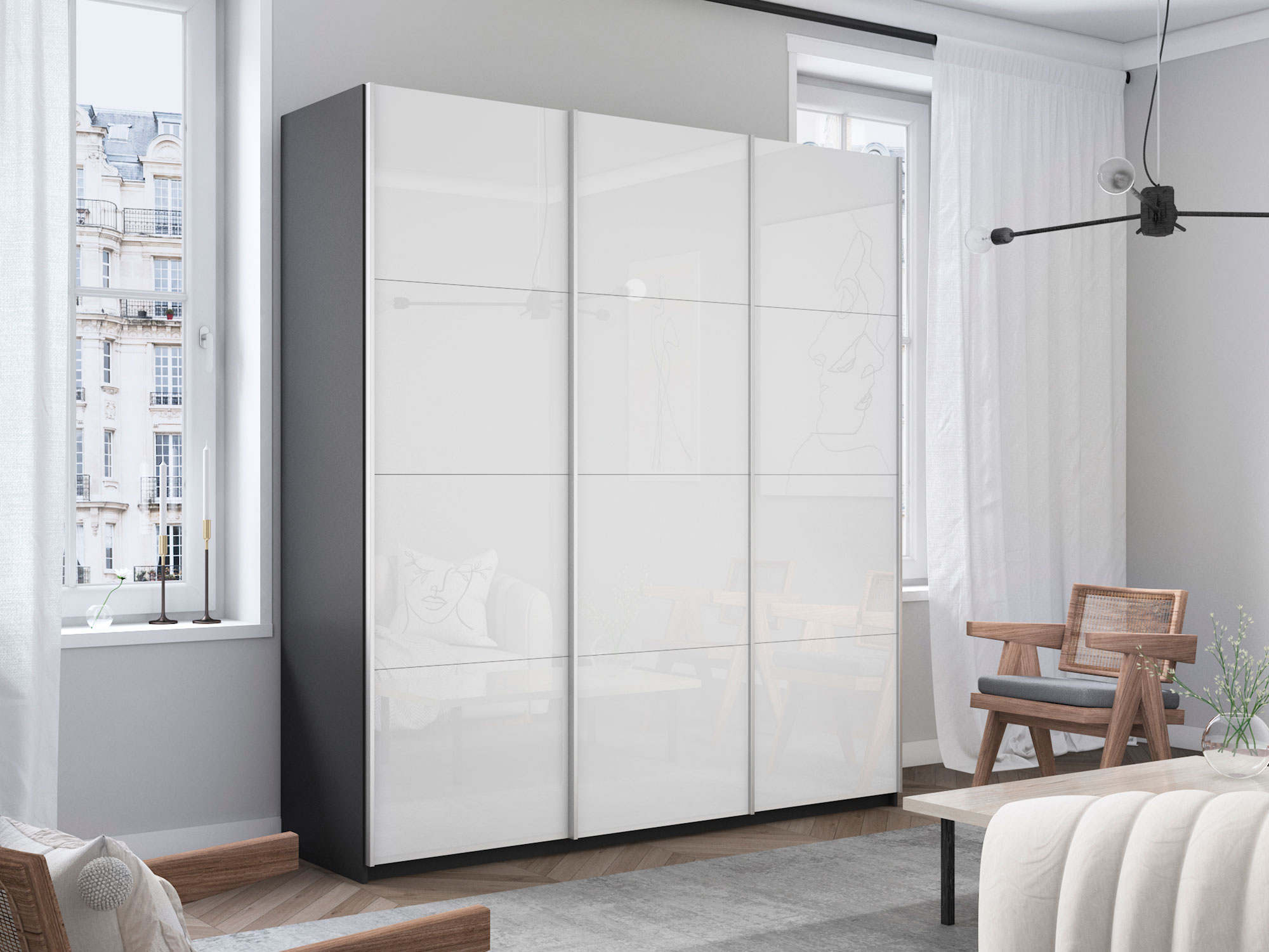 Шкаф-купе Прайм 3-х дверный 2100 три стекла белые Серый Диамант