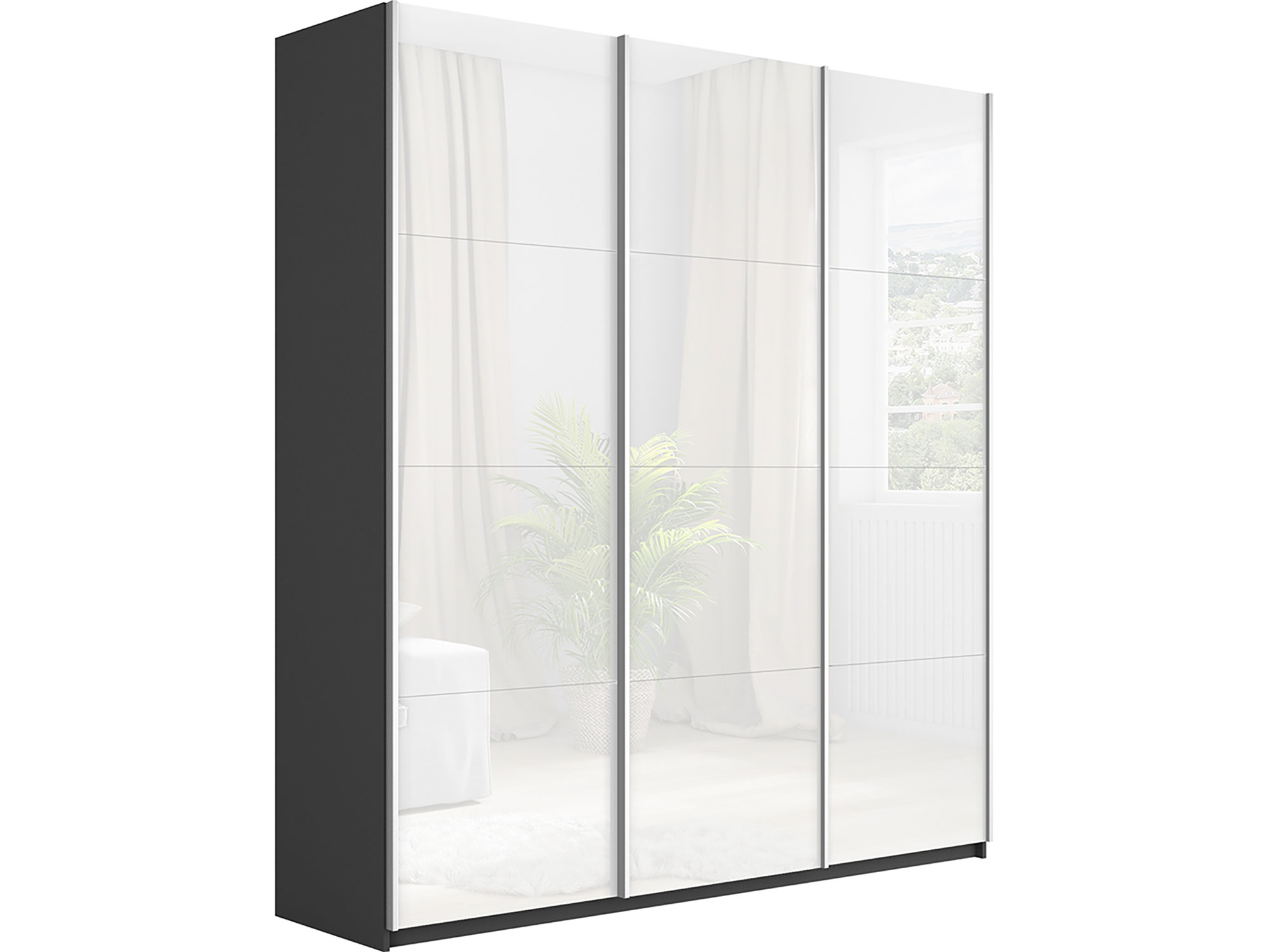 - Шкаф-купе Прайм 3-х дверный 2100 три стекла белые Серый Диамант