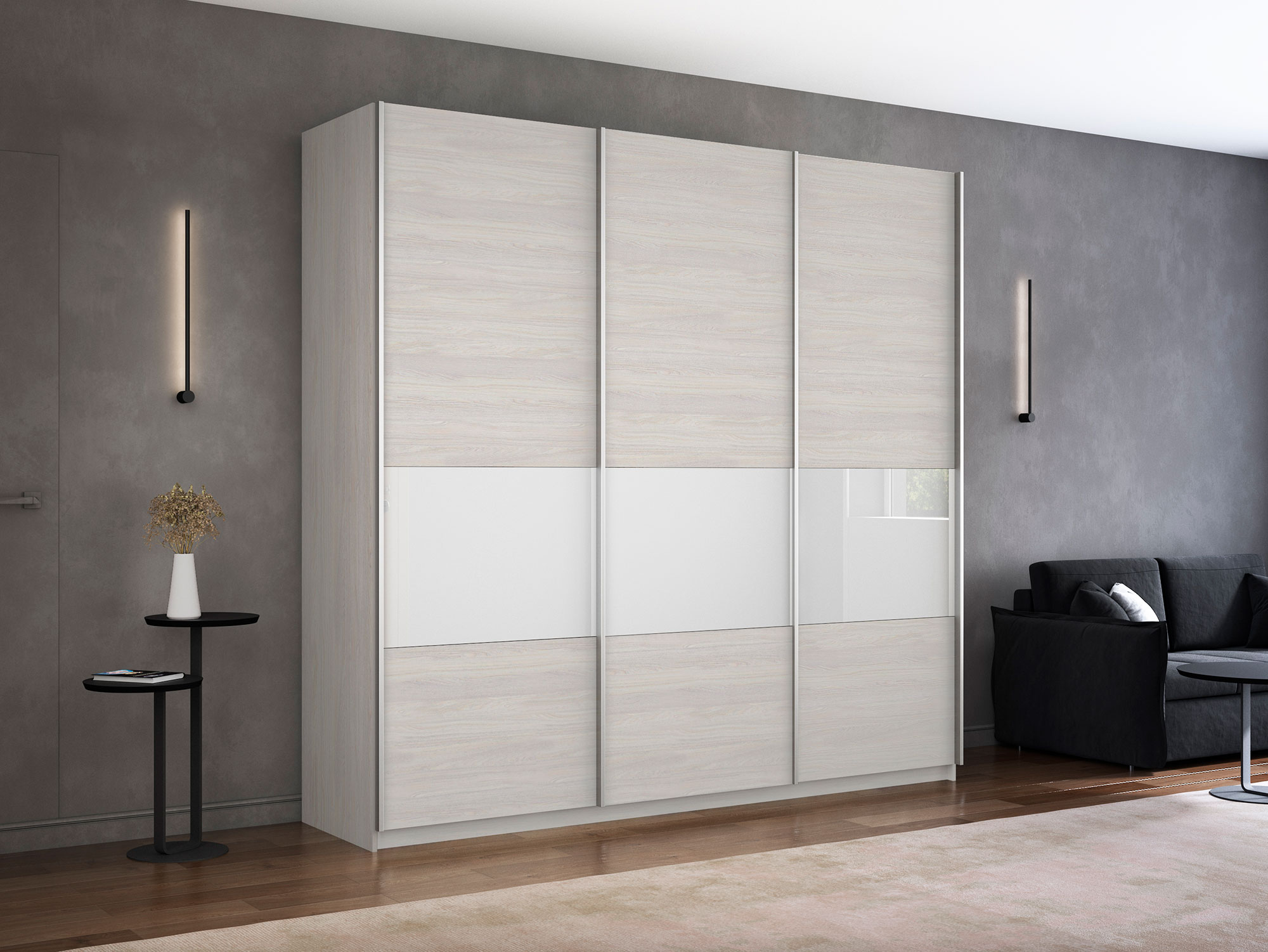 Шкаф-купе Прайм Широкий 3-х дверный ДСП/вставки Стекло Белое Ясень Анкор Светлый