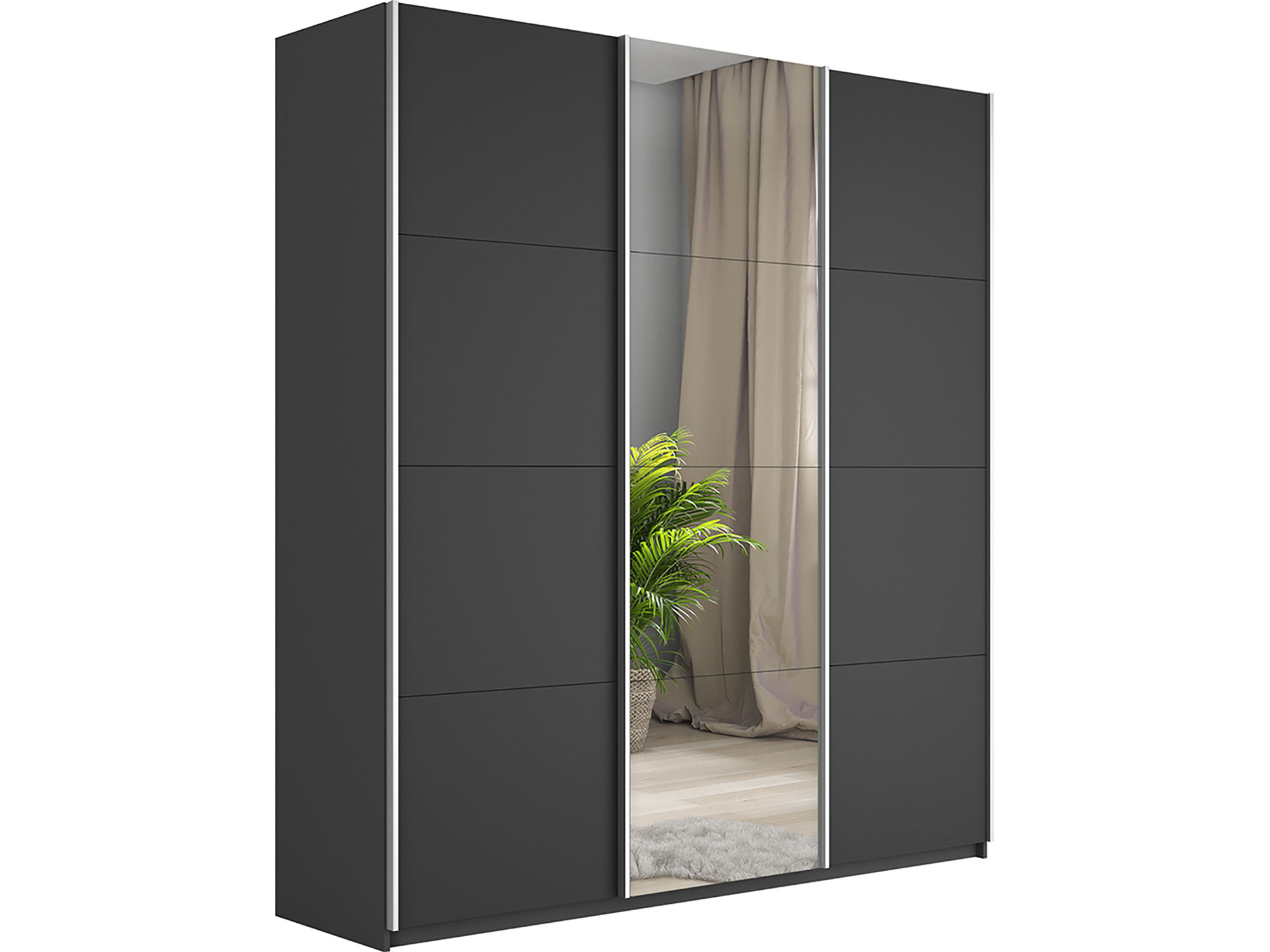 - Шкаф-купе Прайм Широкий 3-х дверный два ДСП/Зеркало Серый Диамант