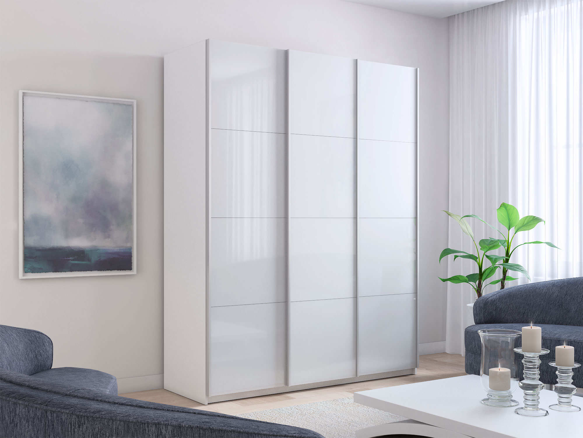 Шкаф-купе Прайм Широкий 3-х дверный три белых стекла Белый Снег