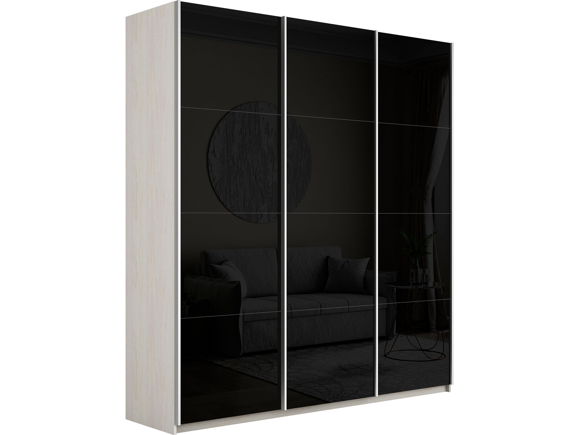 Шкаф-купе Прайм Широкий 3-х дверный три черных стекла Ясень Анкор Светлый