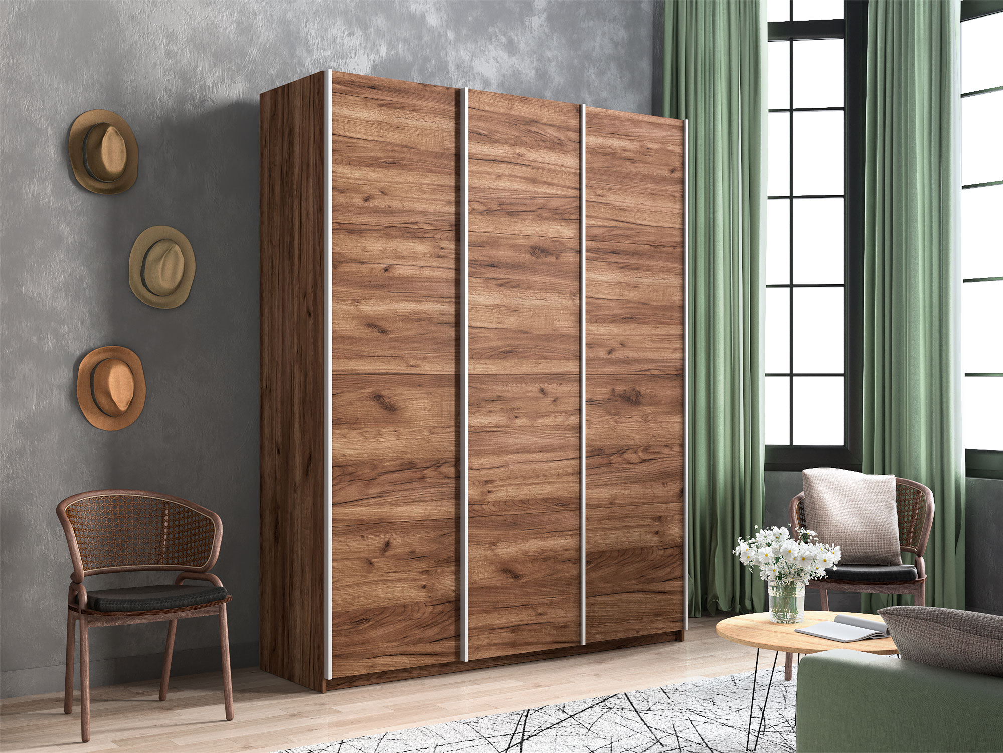 Шкаф-купе Прайм Широкий 3-х дверный три ДСП Крафт табачный