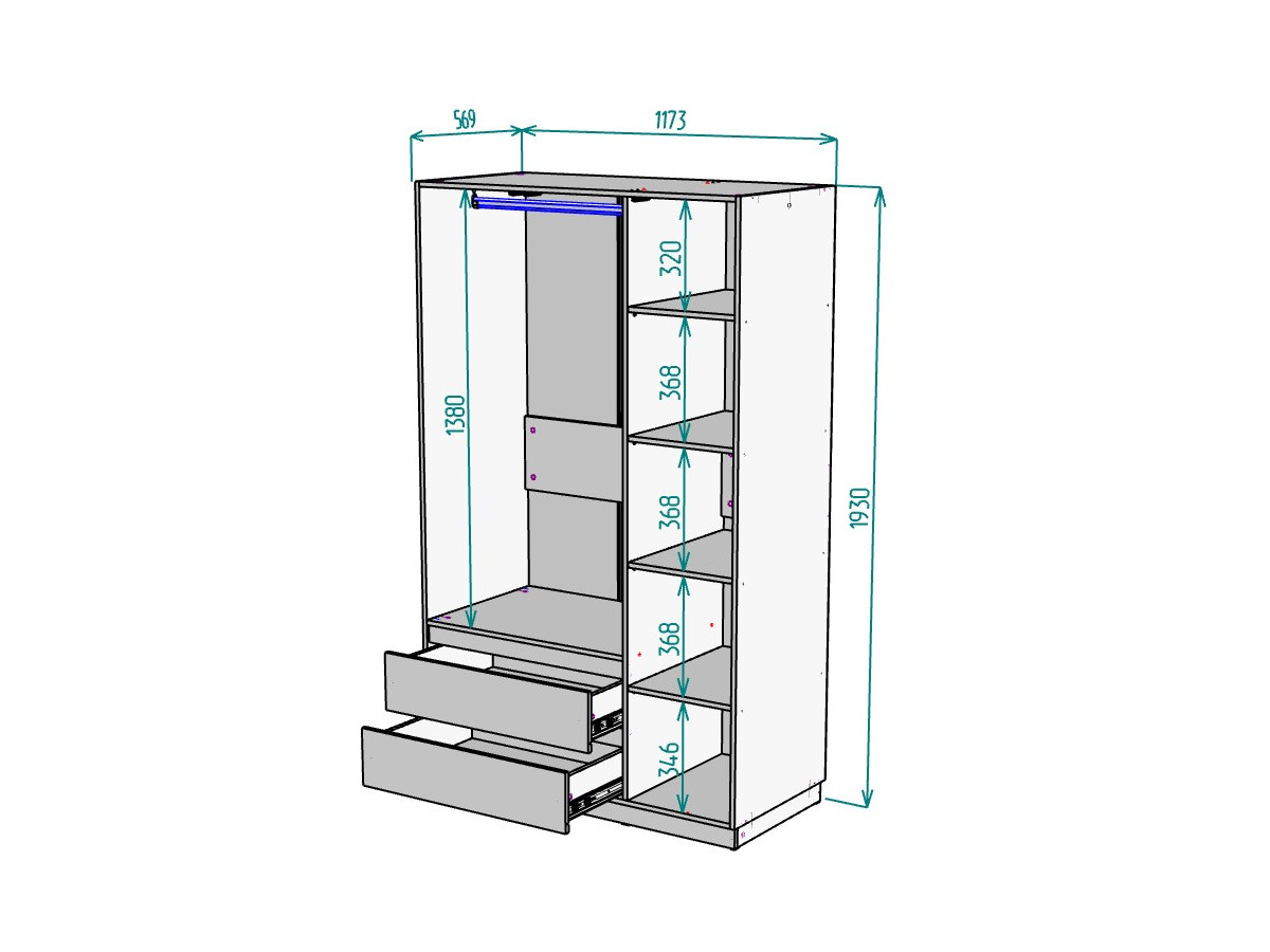- Ширина 1173 мм