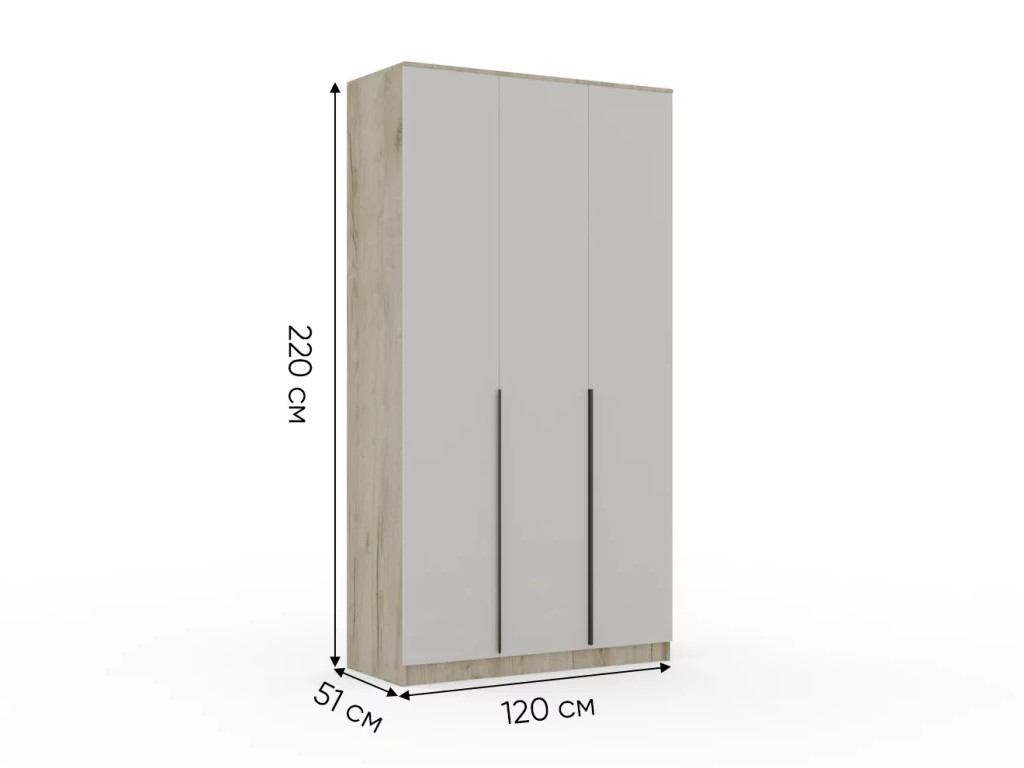 Шкаф Монблан New распашной 1200 3-х дверный Дуб крафт серый-Кашемир