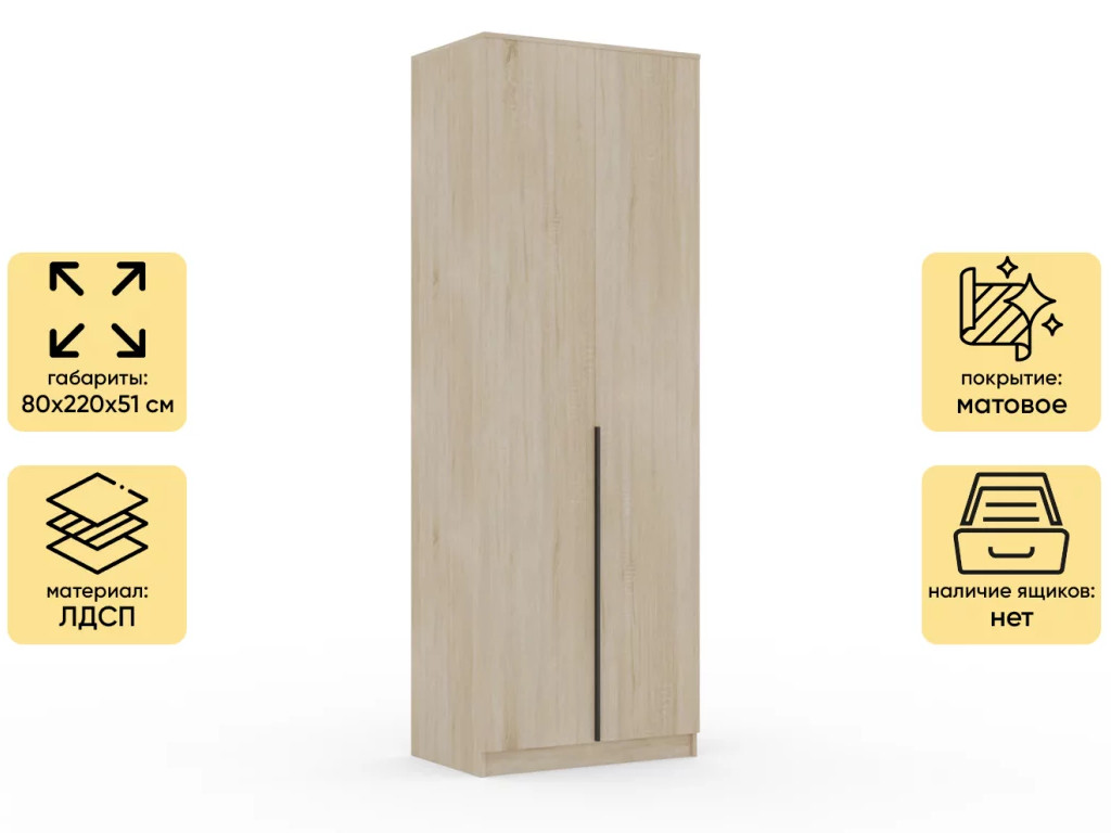 Шкаф Монблан New распашной 800 2-х дверный Дуб сонома
