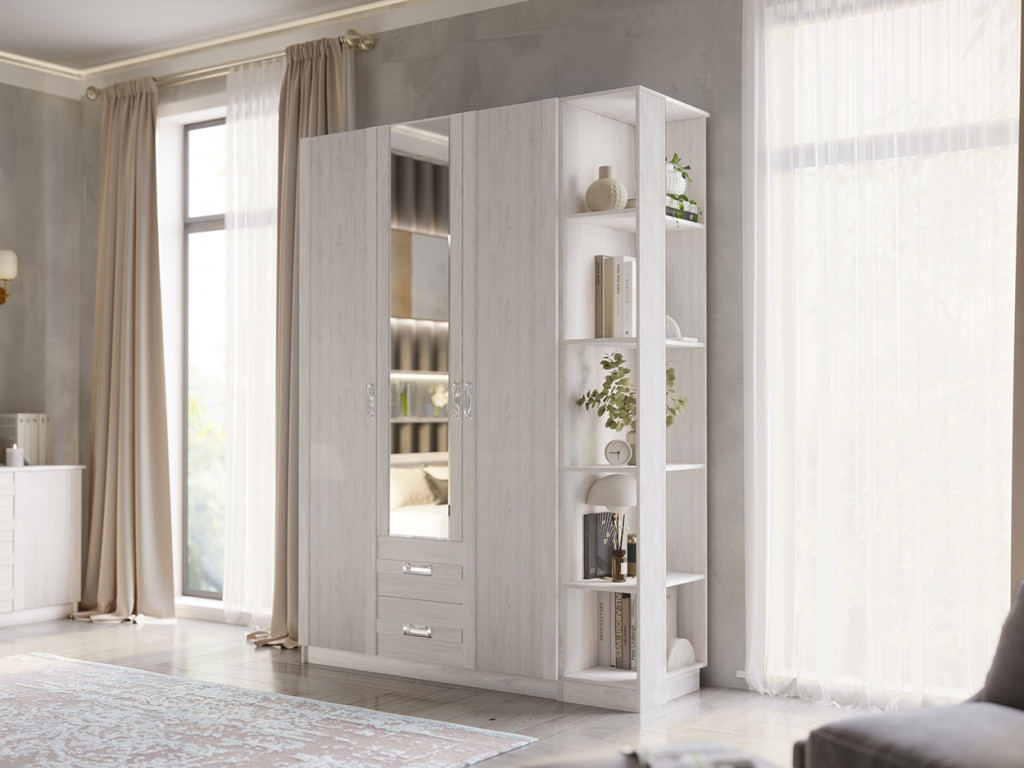 - Шкаф ПШ-1 1500 с зеркалом Сабрина-2 Ясень анкор светлый