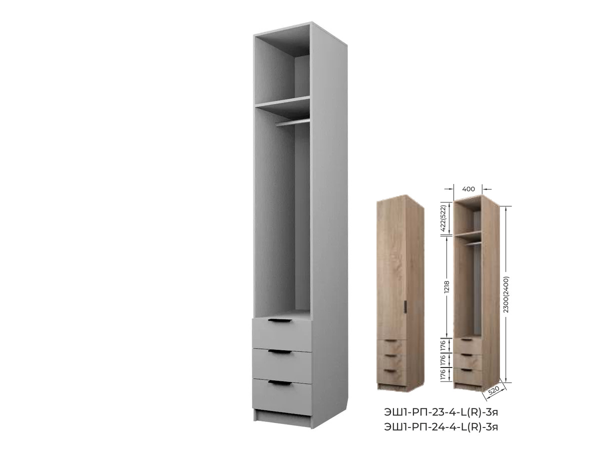 Шкаф с 3 ящиками со штангой Экон ЭШ1-РП-24-4-R-3я