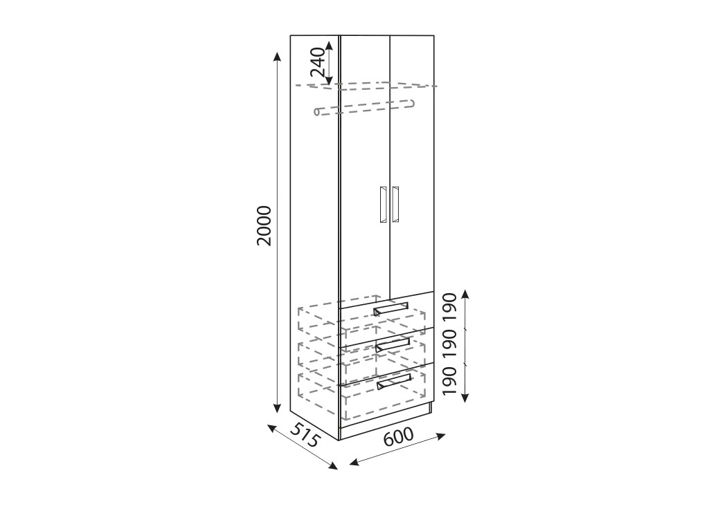 Габариты (ШхГхВ): 600х515х2000 мм