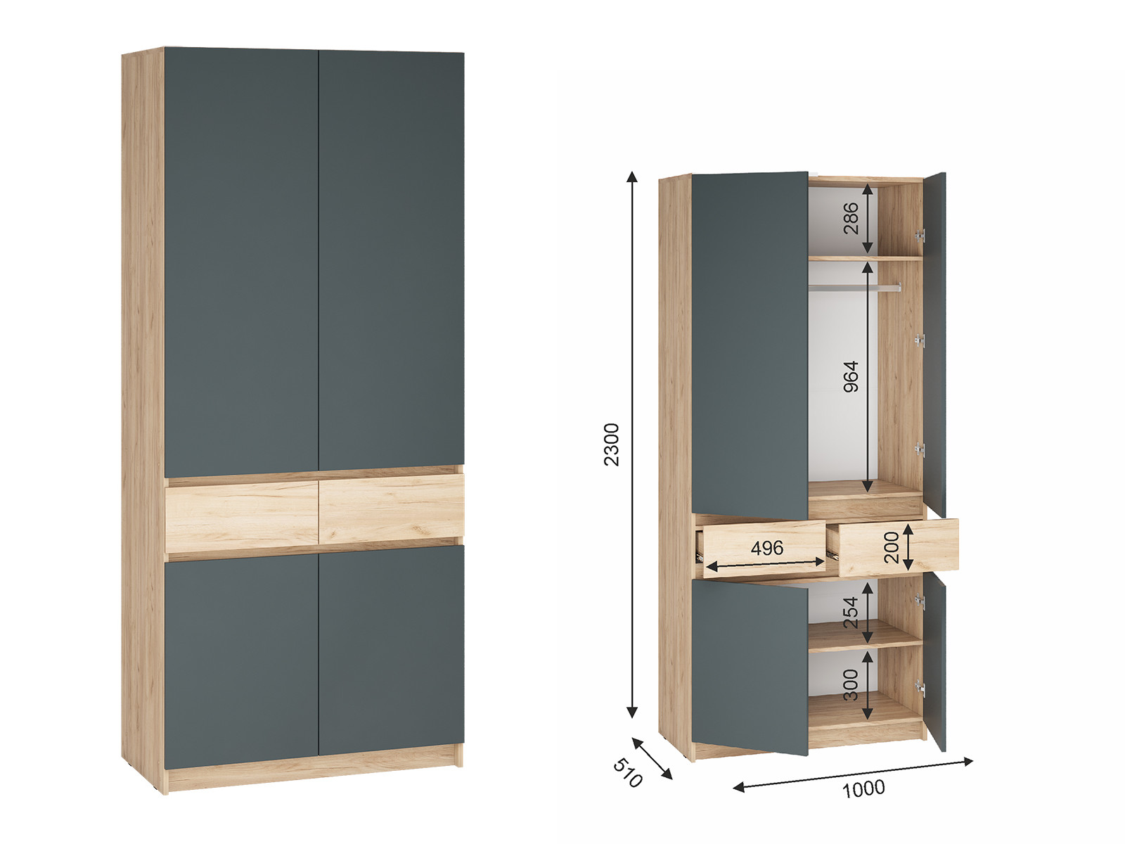 – Лицевая фурнитура отсутствует. Фасады открываются с помощью захвата рукой