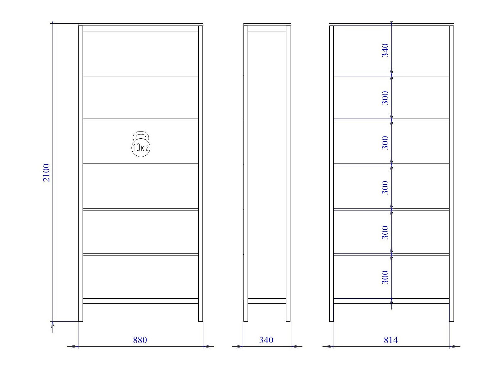 Макс.нагрузка на полку (кг): 10