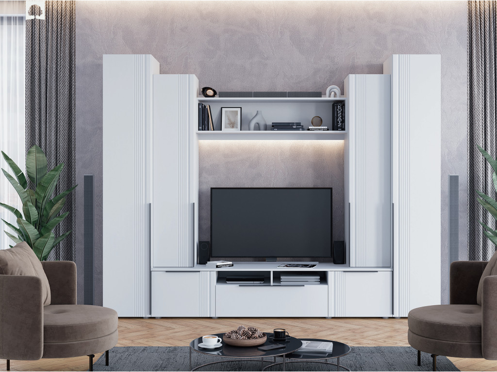 - Фасад: МДФ с фрезеровкой, плёнка ПВХ Силк Маус толщина 320-350 микрон МКМ (с праймером)