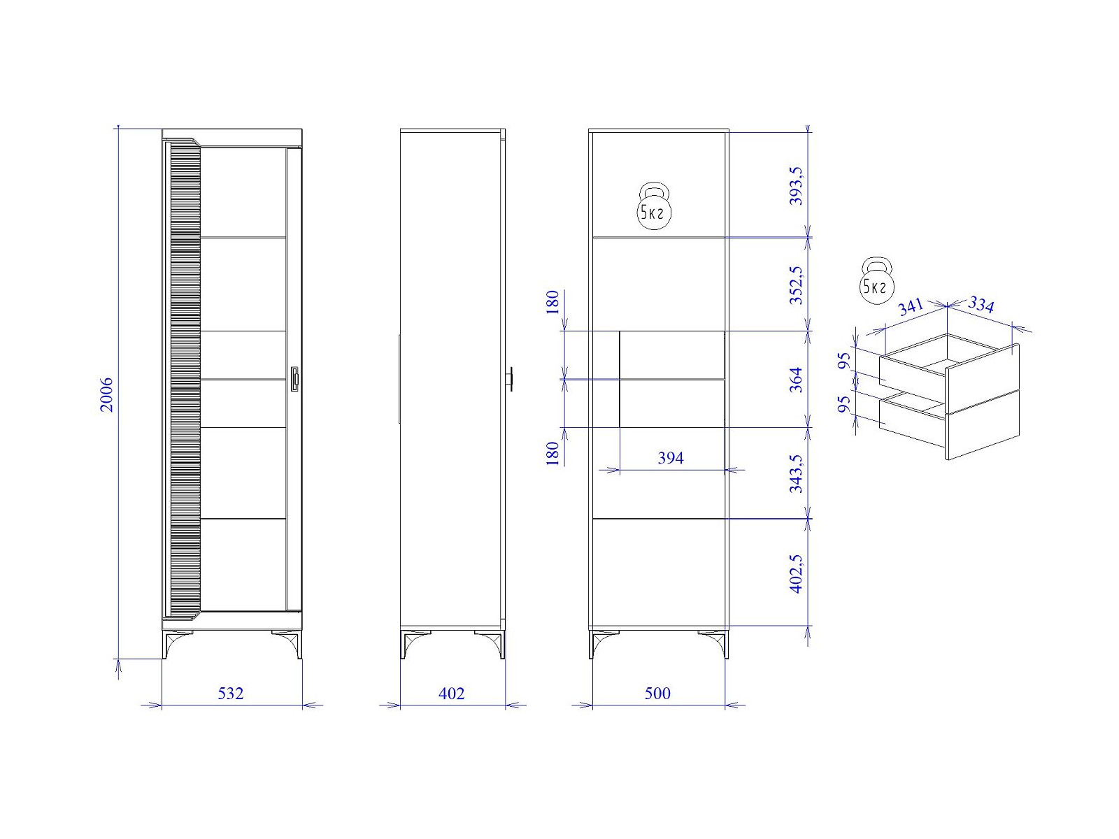 Макс.нагрузка на ящик/полку (кг): 5
