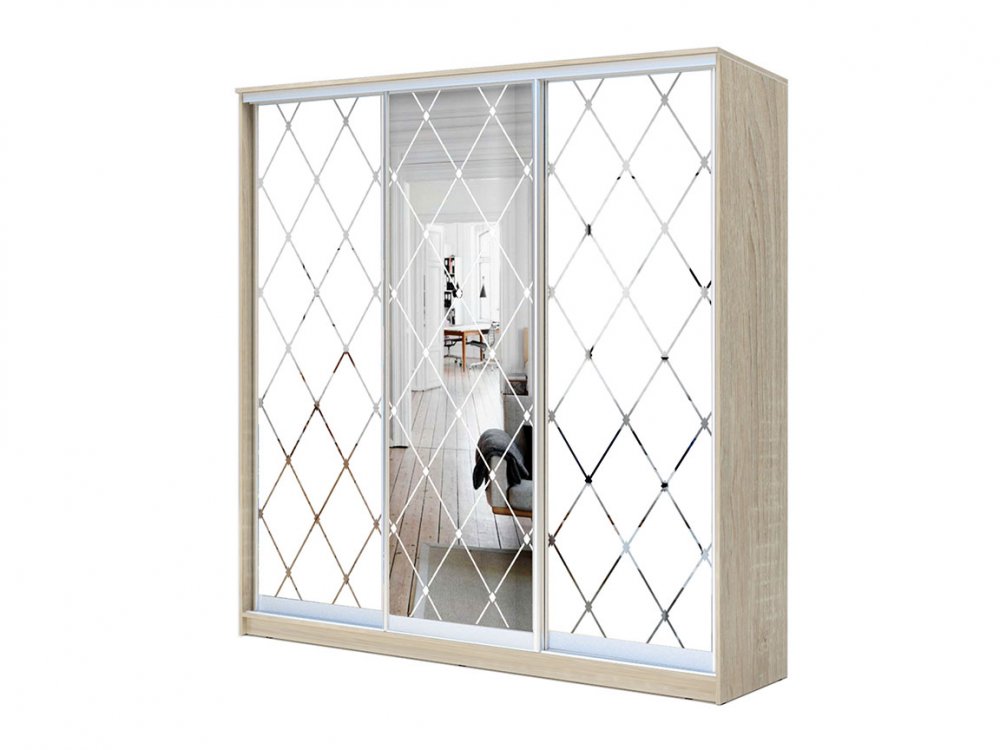 - 3 двери Зеркало с пескоструйной обработкой