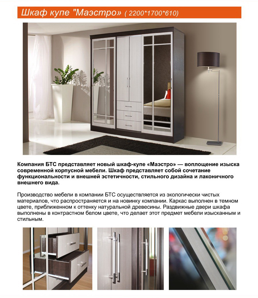 - Шкаф-купе Маэстро 1700 мм Лидер 1М