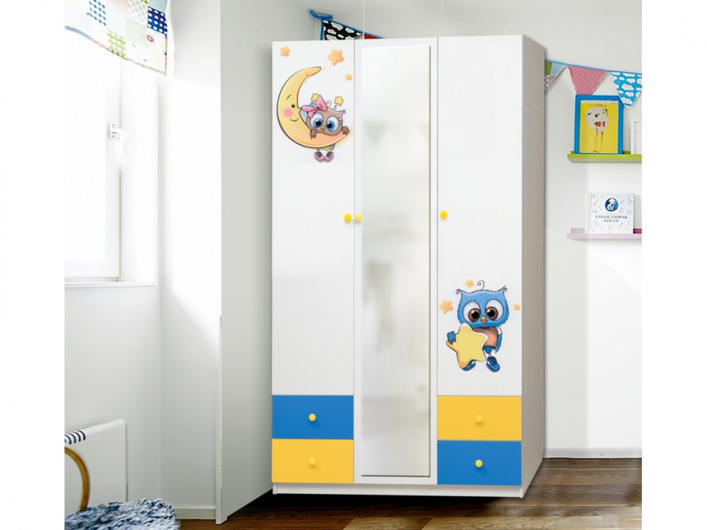 Шкаф трехдверный с зеркалом и фотопечатью Совята 3.2